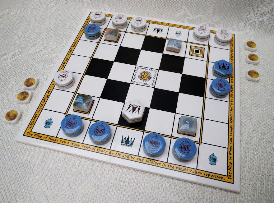 Playre who can move own King onto center space "King's Valley" first win the game!