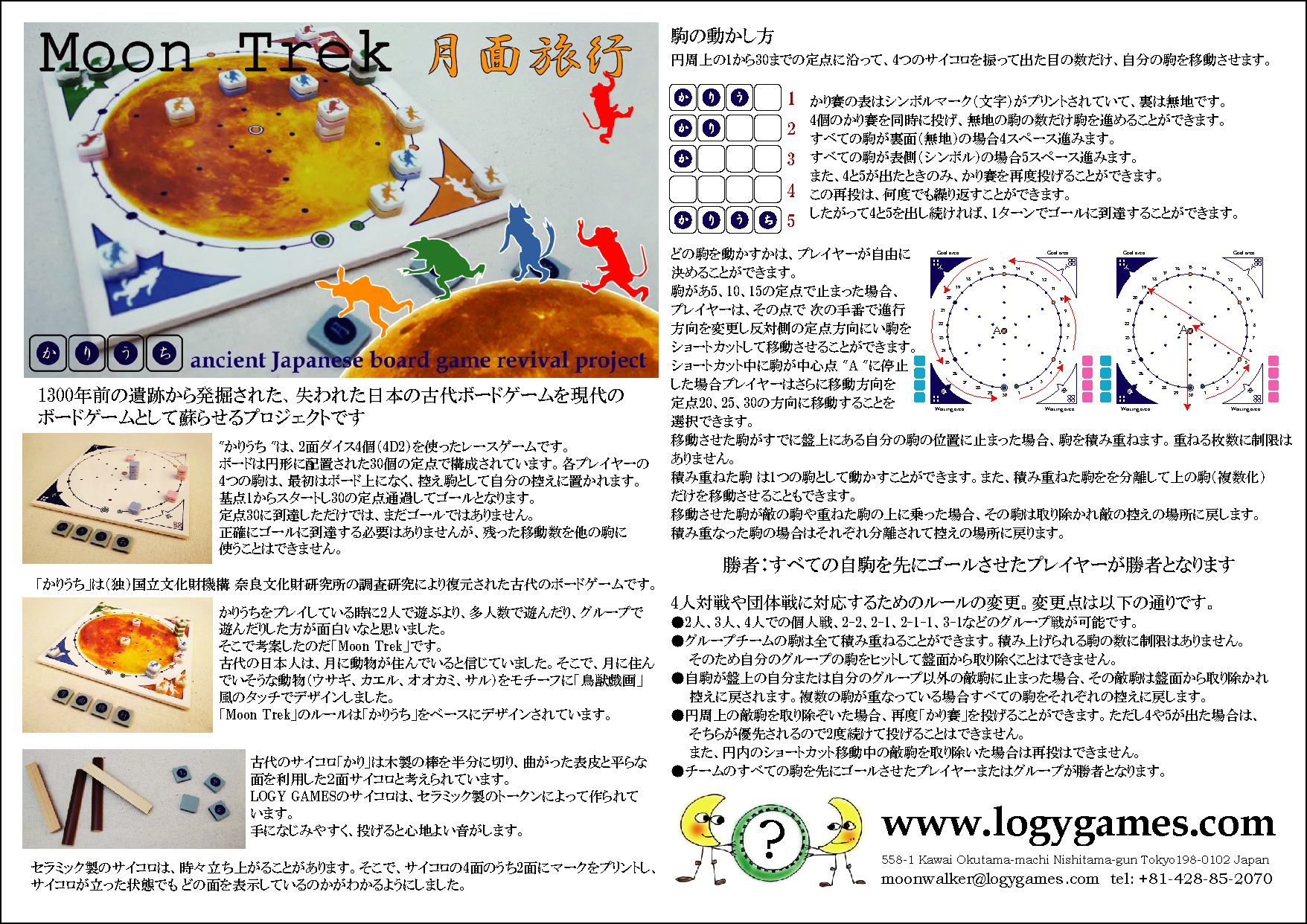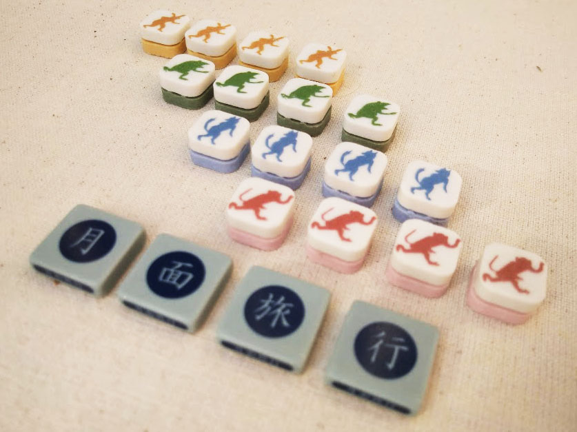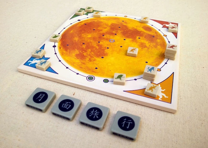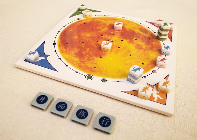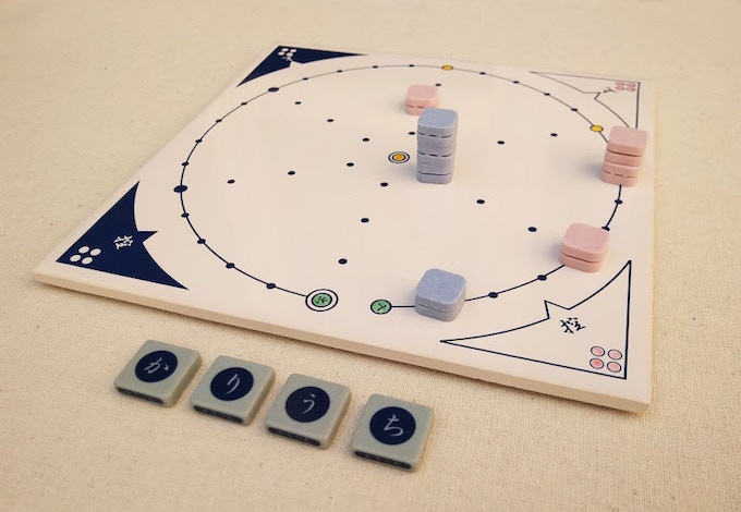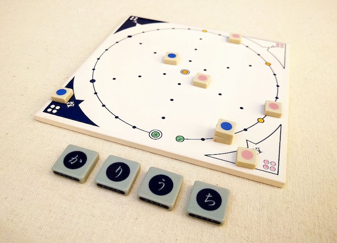 奈良時代の遺跡から出土した陶器片を元に現代に蘇らせた古代のボードゲーム「かりうち」を月をモチーフに現代風にアレンジし4人まで遊べるようにゲームです。